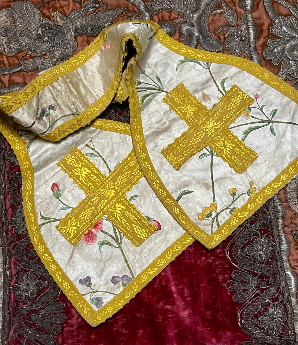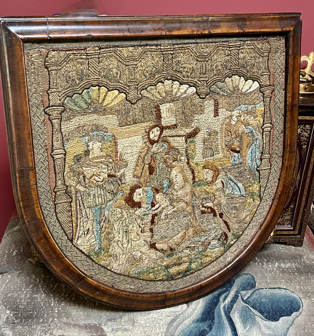 Antique Pillow 16th Century Embroidery Roundel St Peter